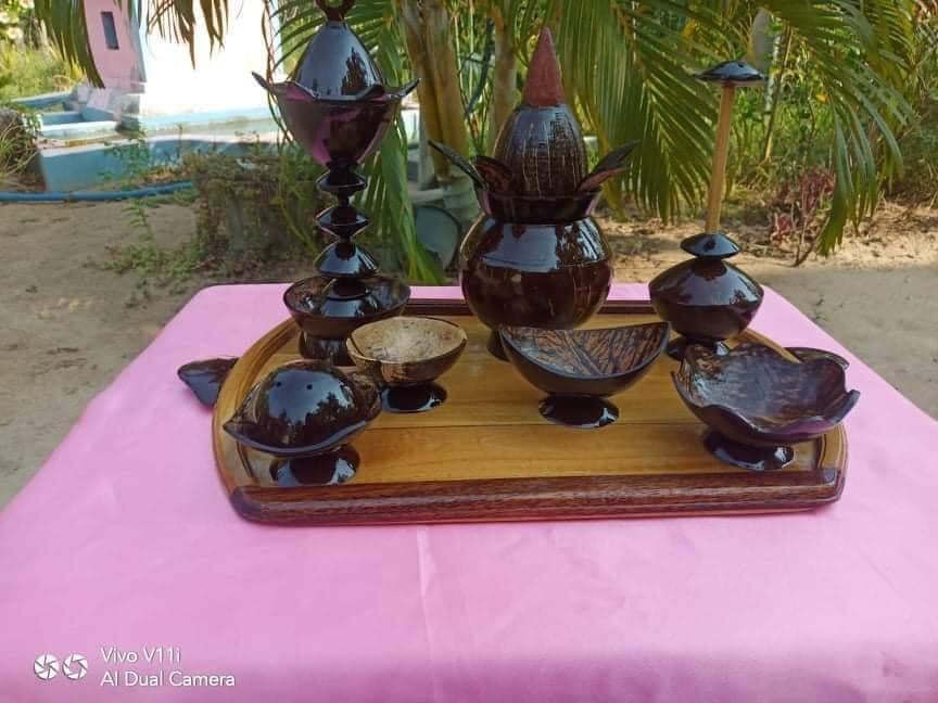 திறமையான குடிசைக்கைத்தொழிலாளர்களை இனம்கண்டு, அவர்களை ஊக்குவிப்பதன்மூலம், அவர்களின் வாழ்வாதாரத்தை உயர்த்துவதோடு, அவர்களின் திறமைகளை வெளிக்கொணரும் நோக்கில், எமது நிறுவனத்தால் மேற்கொள்ளப்படும் திட்டத்தில் உள்வாங்கப்பட்ட அசாத்திய திறமைசாலியான முல்லைத்தீவு உடையார்கட்டைச்சேர்ந்த திருமதி. து.நிதர்சிகா அவர்களின் கைவினைப்பொருட்களில் சிலவற்றை இங்கே உங்கள் பார்வைக்குத்தருவதில் மகிழ்சி,
